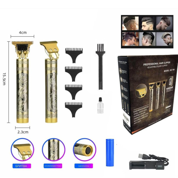 Тример BZ T99 / WS T88 — багатофункціональний пристрій 4-в-1, призначений для стрижки волосся, оформлення бороди/усов, а також для видалення волосся з носа або вух. У комплекті передбачено 4 змінні насадки різної довжини (1,5 / 2 / 3 / 4 мм).