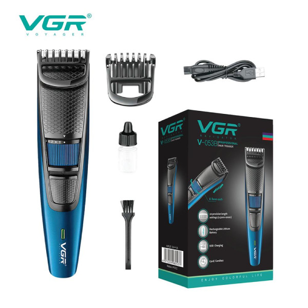 Триммер VGR V-053B — це універсальний прилад для стрижки волосся, бороди та вусів. Він поєднує компактність, зручність і багатофункціональність. Завдяки вбудованому регулятору висоти та універсальній насадці можна легко обирати потрібну довжину стрижки без заміни насадок.