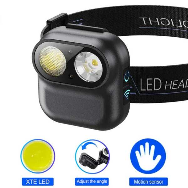 Ліхтар Налобний W809-2XTE Motion Sensor Li-Ion Акумулятор ЗП Type-C Магніт Кліпса