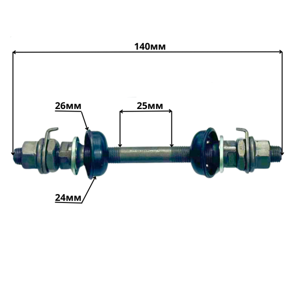 Ось передняя 10 мм с чашками с бортиком длина 140 мм Shunfeng