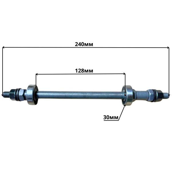 Серая ось (диаметр 10 мм длина 240 мм) из хромомолибденовой стали с картриджным подшипником (2 шт.) Для фетбайков крепление на гайку Устойчива к нагрузкам Прочная конструкция