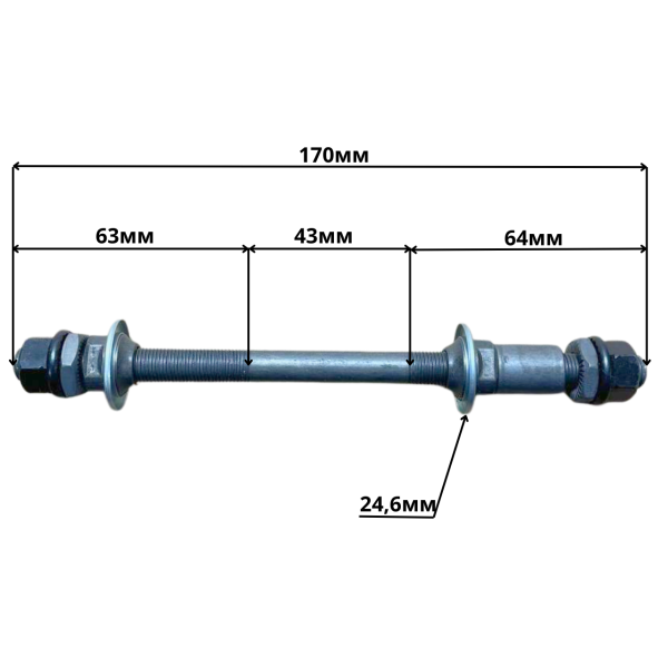 Ось задняя 10 мм с пыльниками длина 170 мм Shunfeng
