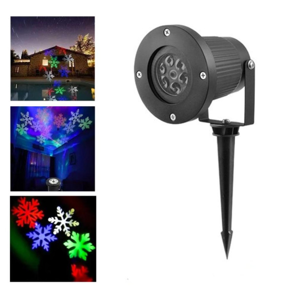 Це диско-лазерний проектор, який створює декоративні світлові ефекти на фасадах, стінах, деревах чи інших поверхнях. Підходить як для використання всередині приміщень, так і надворі — має вологостійкий корпус. У комплекті — два кронштейна: один для встановлення в ґрунт або на землю, інший — для настінного монтажу.