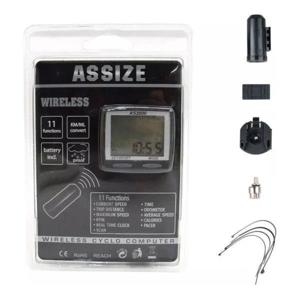 Беспроводной велокомпьютер AS 2000 ASSIZE с 11 функциями измеряет скорость, дистанцию, время и калории. Влагозащищенный корпус, двухстрочный дисплей и автостарт/стоп повышают удобство. Производство Тайвань обеспечивает надежность. Подходит для активных поездок.