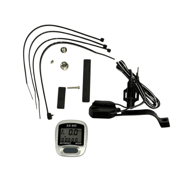 Провідний велокомп’ютер AS 405 ASSIZE з 11 функціями вимірює швидкість, дистанцію і температуру. Вологозахищений корпус, двостроковий дисплей. Провідний датчик забезпечує точність. Виробництво ASSIZE гарантує надійність.