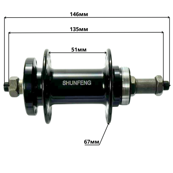Втулка задняя 210 эксцентрик 36 спиц черный пром Shunfeng